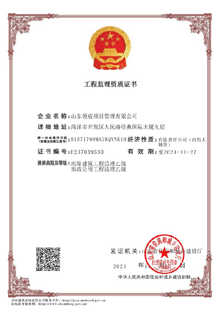 山東領宸項目管理有限公司是一家以全過程工程咨詢?yōu)楹诵牡淖稍兎展荆竟粳F(xiàn)具備工程造價咨詢乙級資質(zhì),房屋建筑工程、市政工程監(jiān)理乙級資質(zhì)和招標代理備案。公司擁有專業(yè)的工作團隊及豐富的行業(yè)經(jīng)驗,在行業(yè)領域內(nèi)具有雄厚的實力,企業(yè)管理人員擁有行業(yè)20年以上的資深行業(yè)工作經(jīng)驗。公司現(xiàn)有專業(yè)技術人員50余人,具有一級注冊造價工程師、注冊監(jiān)理工程師、一級注冊建造師、二級注冊建造師、招標師等工程類國家注冊執(zhí)業(yè)資格證書人員合計30余人以及高級工程師3人,持證上崗率達到90%......